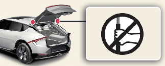 Öffnen oder schließen Sie die elektrische Heckklappe nicht manuell. Denn dadurch kann die elektrische Heckklappe beschädigt werden. Wenden Sie keine Gewalt an, wenn Sie die elektrische Heckklappe beispielsweise aufgrund einer abgeklemmten oder entladenen Batterie manuell öffnen oder schließen müssen.