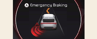 Wenn das Fahrzeug aufgrund einer Notbremsung angehalten wurde, erscheint die Warnmeldung auf dem Kombiinstrument. Zur Sicherheit sollte der Fahrer sofort das Bremspedal betätigen und die Umgebung prüfen.