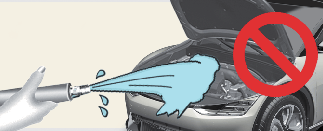 Das Waschen mit Wasser im Motorraum einschließlich Hochdruckwäsche mit Wasser kann Fehlfunktionen der Stromkreise im Motorraum verursachen.