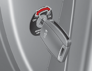 ON/OFF“ und drehen Sie ihn in die Stellung OFF (Aus). Die Kontrollleuchte für die Deaktivierung des Beifahrerfrontairbags