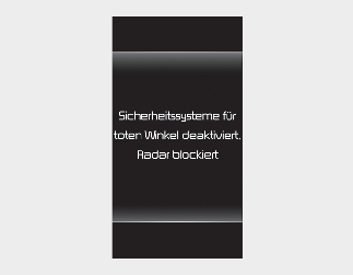 In diesem Fall wird die Warnmeldung „Totwinkel-Sicherheitssystem deaktiviert. Radar blockiert“ auf dem Kombiinstrument angezeigt.