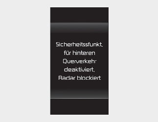 In diesem Fall wird die Warnmeldung „Querverkehrsicherheitssystem deaktiviert. Radar blockiert“ auf dem Kombiinstrument angezeigt. Dies ist keine Fehlfunktion.