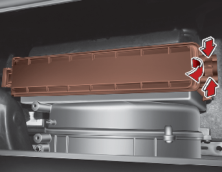 Der Luftfilter der Klimaanlage muss laut Wartungsplan ersetzt werden. Wenn das Fahrzeug über einen längeren Zeitraum in Großstädten mit hoher Luftverunreinigung oder auf unbefestigten, staubigen Straßen eingesetzt wird, muss der Filter häufiger geprüft und früher ersetzt werden. Wenn Sie den Luftfilter der Klimaanlage ersetzen, ersetzen Sie ihn auf folgende Art und Weise und gehen Sie sorgfältig vor, um eine Beschädigung anderer Bauteile zu vermeiden.