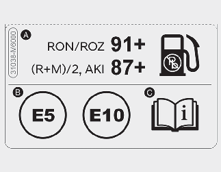 Der Kraftstoffaufkleber ist auf der Tankklappe angebracht.