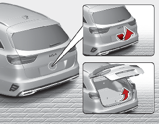 Com todas as portas trancadas, se o botão de desbloqueio da porta da bagageira na Smart Key for premido durante mais de 1 segundo, a porta da bagageira é destrancada. Assim que a porta da bagageira for aberta e depois fechada, a porta da bagageira é automaticamente trancada.