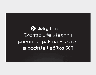 Poté, pokud je jedna nebo více pneumatik podhuštěná, rozsvítí se kontrolka podhuštění a na přístrojovém panelu se zobrazí hlášení.