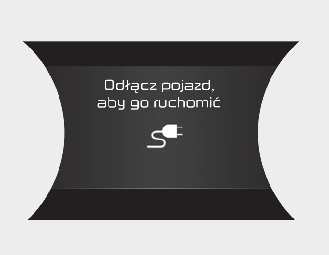 Komunikat ten jest wyświetlany w przypadku uruchamiania pojazdu bez odłączenia przewodu ładowania. Należy odłączyć przewód ładowania, a następnie uruchomić pojazd.