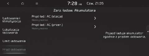 Możliwe jest wyregulowanie prądu ładowania dla ładowarki AC. Należy wybrać plan ładowania odpowiedni dla stosowanej ładowarki.