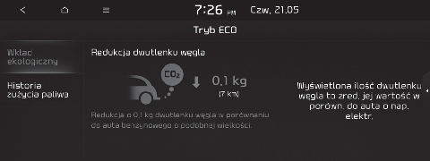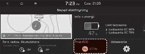 Wyświetlane są informacje dotyczące ograniczenia emisji CO2 w porównaniu z pojazdami napędzanymi paliwem.