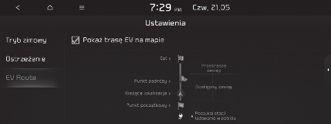 Można ustawić Tryb zimowy, Ostrzeżenia i funkcje trasy EV.