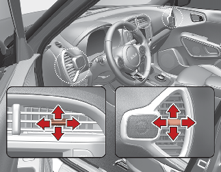 Szczelinę nawiewu powietrza można skierować w następujący sposób: