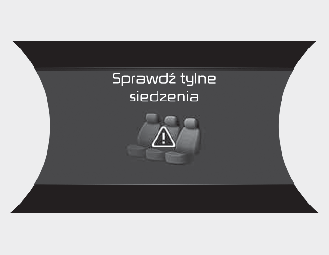 Gdy przednie drzwi zostaną otwarte po otwarciu i zamknięciu tylnych drzwi oraz wyłączeniu silnika, w zestawie wskaźników pojawi się komunikat ostrzegawczy „Check rear seats” (Sprawdź tylne siedzenia).