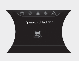 Komunikat ten pojawi się, gdy funkcja kontroli odległości między pojazdami przestanie działać prawidłowo.