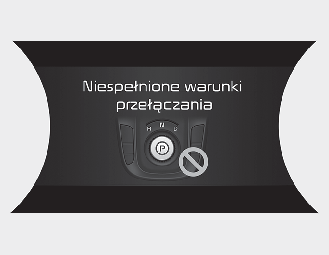 Ten komunikat pojawia się na wyświetlaczu LCD w przypadku zmiany biegu na P (parkowanie) podczas jazdy.