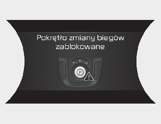 Ten komunikat pojawia się na wyświetlaczu LCD, gdy pokrętło zmiany biegów jest trwale zablokowane lub występuje problem z pokrętłem zmiany biegów.
