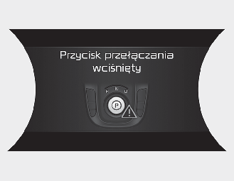 Ten komunikat pojawia się na wyświetlaczu LCD w przypadku, gdy przycisk zmiany biegów jest nieprzerwanie przytrzymywany lub występuje problem z przyciskiem.
