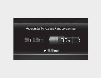 Po rozpoczęciu ładowania na tablicy wskaźników przez około 1 minutę wyświetlany jest szacowany czas ładowania. Czas ładowania wyświetlany jest również po otwarciu drzwi kierowcy podczas trwania procesu ładowania. Po ustawieniu planowanego ładowania szacowany czas ładowania wyświetlany jest jako „--”.