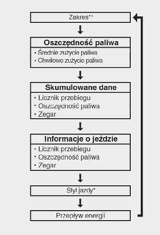 Zakres średniego spalania: 0 ~ 99,9 km/l, l/100 km lub mpg