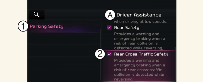 Rear Cross-Traffic Collision-Avoidance Assist settings