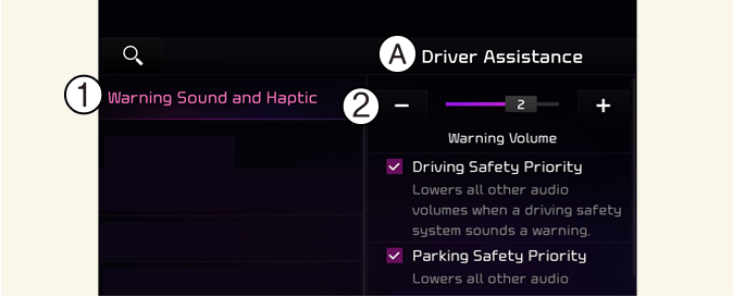 If the vehicle is restarted, Warning Volume will maintain the last setting.