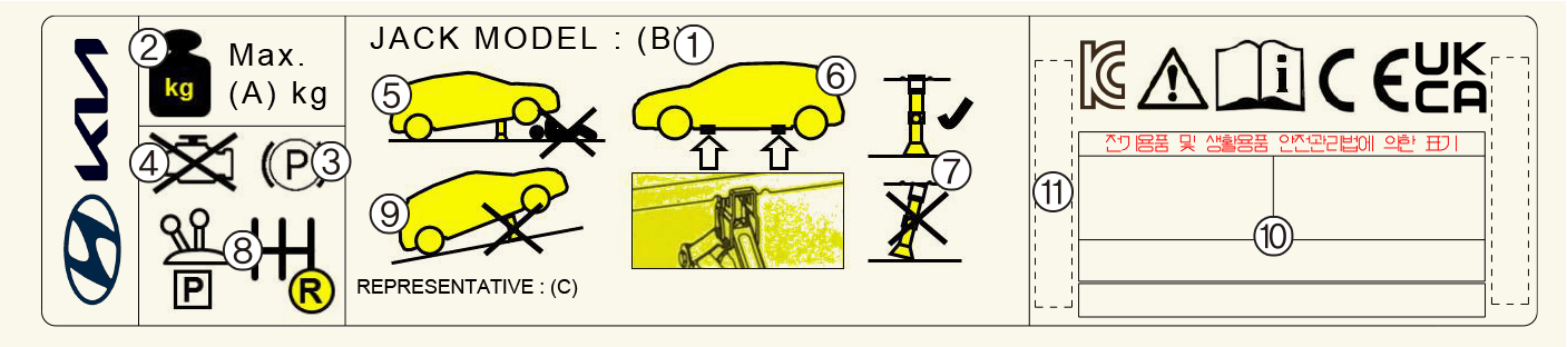 * The actual Jack label in the vehicle may differ from the illustration. For more detailed specifications, refer to the label attached to the jack.