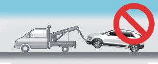 If you tow the vehicle while the front wheels are touching the ground, the vehicle motor may generate electricity and the motor components may be damaged or a fire may occur.