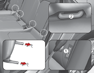 ISOFIX anchorages have been provided in the left and right outboard rear seating positions. Their locations are shown in the illustration.