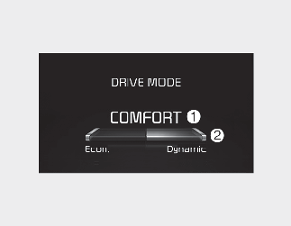 The drive mode selected by the driver (1) and the driving style gauge (2) showing the driver’s driving style are displayed on the screen.