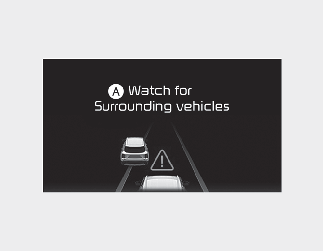 In the following situation, the 'Watch for surrounding vehicles' warning message will appear on the cluster, and an audible warning will sound to warn the driver of road conditions ahead.
