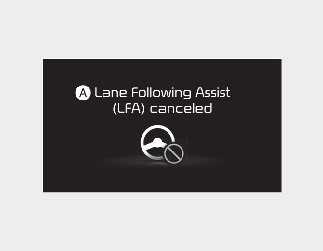 If the driver still does not have their hands on the steering wheel after the hands-off warning, the 'Lane Following Assist (LFA) canceled' warning message will appear and Lane Following Assist will be automatically canceled.