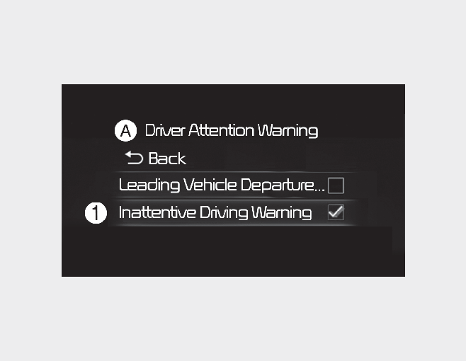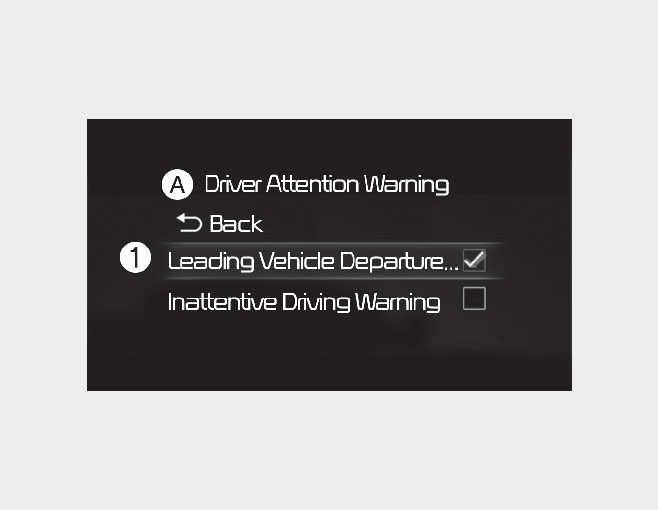 If 'Leading Vehicle Departure Alert' is selected, the function will inform the driver when the front vehicle departs from a stop.