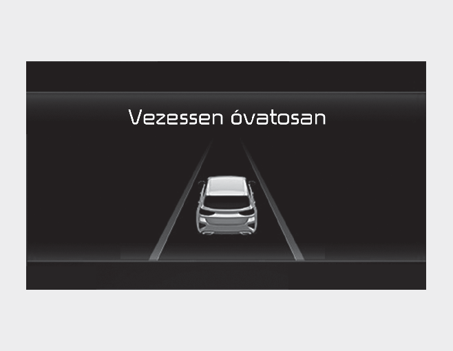 Ha a jármű vészfékezés miatt megállt, a műszerfalon megjelenik a 'Vezessen óvatosan' figyelmeztető üzenet.