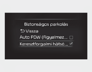 Az ‘Off‘ (ki) választása esetén a hátsó keresztforgalmi-ütközés-elkerülő segéd kikapcsol.