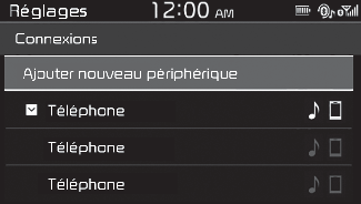 Vous ne pouvez pas accéder à l'écran du téléphone si aucun téléphone mobile n'est connecté. Pour utiliser la fonction téléphone Bluetooth, connectez un téléphone portable au système.