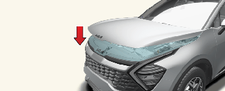 차량의 앞에서 엔진 후드를 약간 들어 올리십시오.