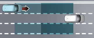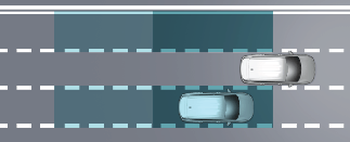 경고 영역은 자차의 속도에 따라 변경됩니다. 단, 사각 지대에 차량이 있더라도 자차가 빠른 속도로 추월할 경우 경고를 하지 않습니다.