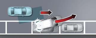 전진 출차 시 후측방에서 다가오는 차량과의 충돌 위험이 판단되면 충돌하지 않도록 제동을 도와줍니다.
