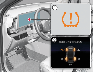 차량 출발 후 약 1~2분이 지나면 타이어 공기압을 확인할 수 있습니다.