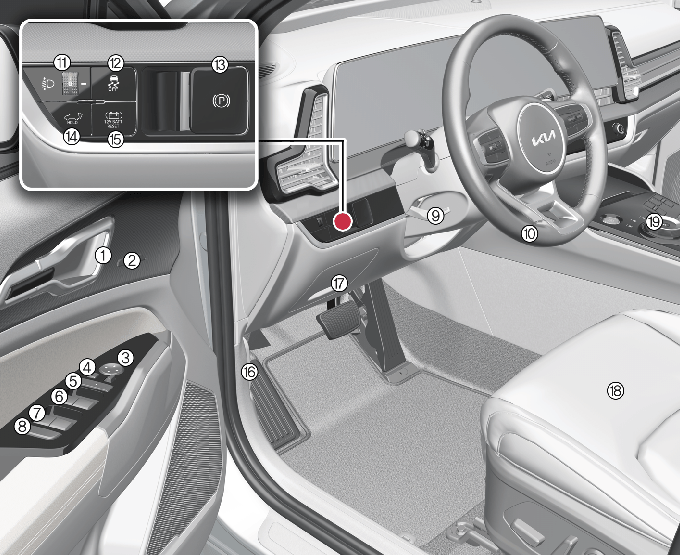 * 실제 차량의 스위치 형상 및 배열은 적용된 사양에 따라 달라질 수 있습니다.