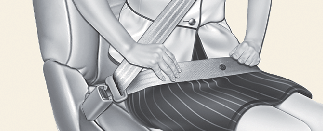 안전벨트의 골반띠 부분이 부드럽게 골반 부분을 지나도록 해야 합니다.