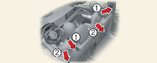 리트랙터 프리텐셔너는 앞좌석 및 뒷좌석 왼쪽/오른쪽에 장착됩니다.