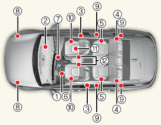 에어백 제어 모듈은 시동「ON」에서 충돌 시 에어백과 프리텐셔너를 작동하기 위해 모든 에어백 부품을 항상 모니터링하여 충돌의 세기를 측정합니다.
