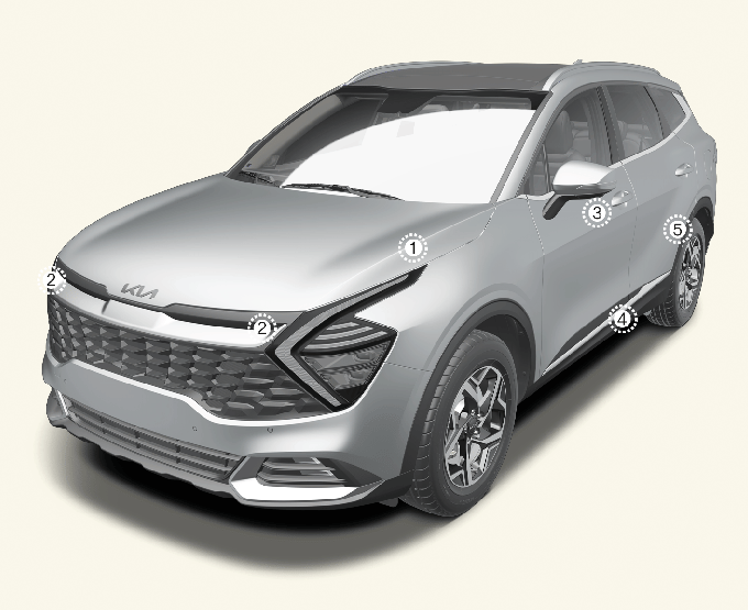 * 실제 차량의 센서의 위치는 위 이미지와 차이가 있을 수 있습니다.