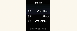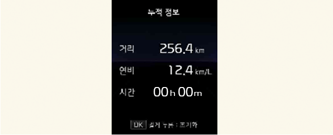 평균 연비가 표시된 상태에서 스티어링 휠의 OK 버튼을 약 1초 이상 길게 누르십시오.