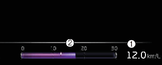 차량 속도 약 8 km/h 이상에서 순간 연비가 표시됩니다.