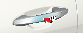 등록된 스마트폰의 NFC 안테나를 운전석 또는 동승석 도어 핸들 인증 패드 중앙에 2초 이상 접촉하십시오.