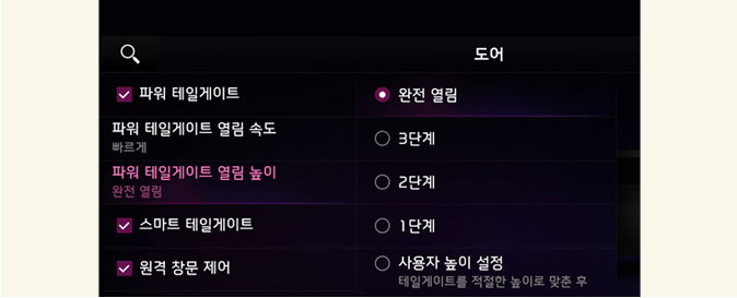 알림음이 들린 이후에 해당 위치까지만 테일게이트가 열립니다.
