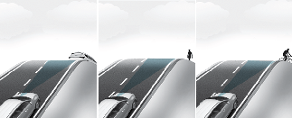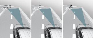 오르막길이나 내리막길에서는 전방에 있는 차량, 보행자 및 자전거 탑승자를 인식하지 못하여 경고 또는 제동을 도와주지 않을 수 있습니다.