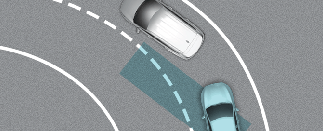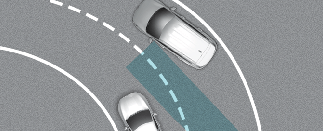 커브 길에서는 옆 차로에 있는 차량을 인식하지 못해 후측방 충돌방지 보조가 정상적으로 작동하지 않을 수 있습니다.