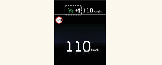 수동 속도 제한 보조 또는 스마트 크루즈 컨트롤 작동 중에 도로의 제한속도가 변경되는 경우, 위 또는 아래 방향의 화살표를 표시하여 운전자에게 설정속도 변경이 필요함을 알립니다. 이때 운전자는 (+)/(-)스위치를 이용하여 제한속도에 맞춰 설정속도를 변경할 수 있습니다.